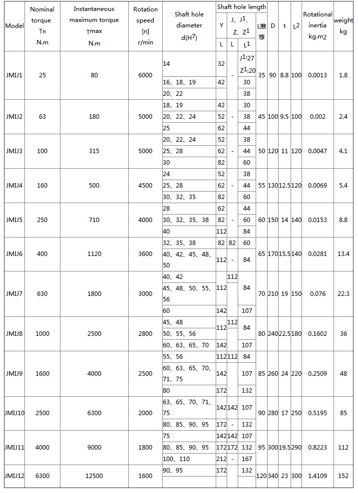 Features and application of JMIJ diaphragm coupling: Compared with flexible joints of metal elastic components, it has high mechanical strength, large bearing capacity, light weight, small size, high transmission efficiency and high transmission accuracy, and good reliability. Easy to remove and so on. Suitable for medium, high speed and large torque shaft drive. Compared with the drum-shaped gear coupling, it has no relative sliding, no lubrication, long service life, no noise, simple structure and so on. It can partially replace the drum-shaped toothed auxiliary device. Not affected by temperature and oil. It has the characteristics of acid resistance, alkali resistance and corrosion resistance. It can be used in high temperature, low temperature and working conditions with oil, water and corrosive media. It is suitable for shafting transmission with little change in load of various mechanical devices. It is extremely versatile and has been widely used in industrialized countries. It is a high-performance flexible coupling 重點 which is mainly promoted and applied in China. High-precision diaphragm coupling can be used for High speed conditions. Compared with the toothed coupling, the diaphragm coupling has no relative sliding, no lubrication, no sealing, no noise, no maintenance, and is convenient to manufacture. It can partially replace the gear coupling. The diaphragm coupling has been widely used in industrialized countries in the world. In practical applications, the intermediate shaft type is generally adopted to improve the offset compensation performance of the two axes.