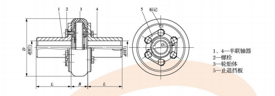 3.橡膠元件(輪胎體)與金屬壓板硫化粘結在一起,裝配是用螺栓直接與兩半聯軸器聯結