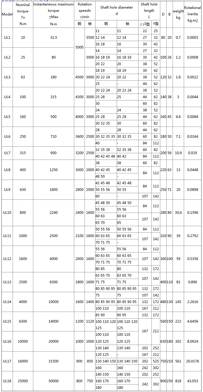 UL輪胎聯軸器的特點