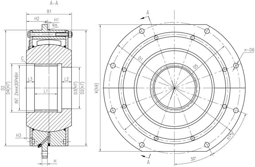 WZL內花鍵卷筒聯軸器主要參數及尺寸: mm