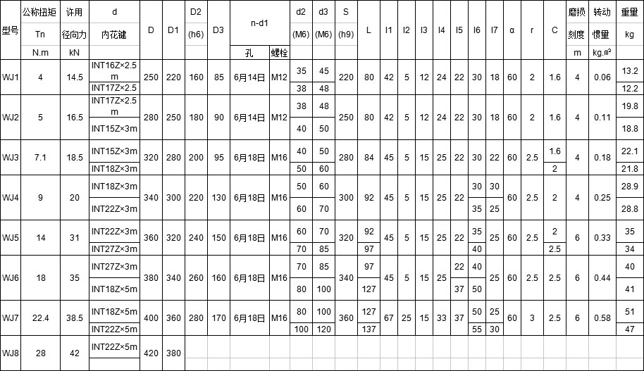 WJ型--內花鍵聯接型;