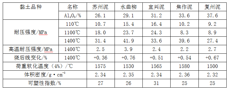 多年來(lái),試驗(yàn)與生產(chǎn)實(shí)踐證明,與黏土結(jié)合耐火澆注料一樣,采用廣西泥,水吉4號(hào)泥、水曲柳黏土和宜興泥,能夠配制成優(yōu)質(zhì)的耐火可塑料。在滿足耐火可塑料黏塑性、施工性和燒結(jié)性即陶瓷結(jié)合的前提下,黏土結(jié)合劑的用量,一般越少越好。