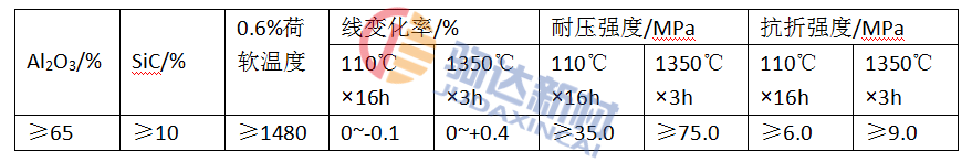 注:表中的理化性能數據來自Al2O3-SiC澆注料生產廠