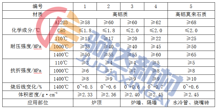 從表1-1中看出,澆注料的Al2O3含量約為60%、足以滿足加熱爐工作的需要。因為Al2O3高,澆注料的抗熱震性不好,易產生剝落;澆注料的強度比黏土結合耐火澆注料高,又大大低于低水泥耐火澆注料。因為強度高,易炸裂和剝落,不利于加熱爐的使用;澆注料1400℃燒后線變化均為正值,在使用中有微膨脹,能防止爐襯裂紋的產生和減少熱剝落。對于內腔蓄熱式加熱爐來說,尤為重要。有腔式爐墻,較小產生裂紋或開裂,能防止煤氣和空氣見的竄通,避免事故的發(fā)生。