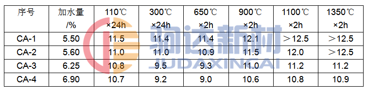 剛玉質澆注料(以下簡稱CA料)的配比如下: