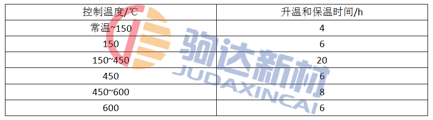 2)當溫度從150升至450℃時會產(chǎn)生大量的水蒸氣,這時要預留多個排氣孔,超過450℃后,水蒸氣逐漸減少,這時可將排氣孔封堵,以達到保溫的目的。