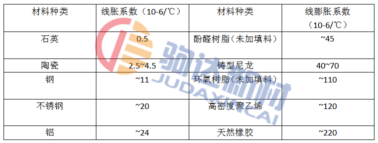 表1 一些材料的熱膨脹系數(shù)