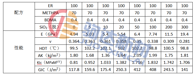 表2 二氧化硅粒子填充環(huán)氧體系各種性能測試結(jié)果