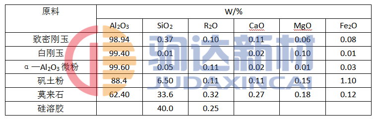 目前,煉鐵廠所用澆注料大多數(shù)為水泥及低水泥結(jié)合高鋁澆注料。這些澆注料成型固化后一般還需養(yǎng)護(hù)2~3d,拆模后一般還需烘爐7d。為了追求高爐的高效化與長(zhǎng)壽化,需要對(duì)爐體進(jìn)行熱態(tài)修補(bǔ),這是水泥、樹脂和焦油結(jié)合材料都無(wú)法滿足的,因?yàn)樗嘟Y(jié)合材料需要足夠的水分和養(yǎng)護(hù)時(shí)間才能有良好的使用性能,而樹脂和焦油結(jié)合材料在熱態(tài)施工過(guò)程中產(chǎn)生有害氣體。為此,以硅溶膠為結(jié)合劑研制了高爐熱態(tài)修補(bǔ)用剛玉—莫來(lái)石快干澆注料。