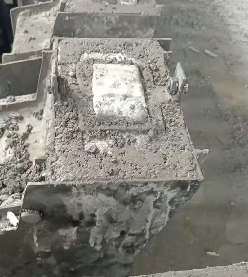 此客戶與我公司合作時間長,最初也針對該客戶用澆注料的要求做過專業(yè)的配方實驗,也得到客戶的認可,并且一直延續(xù)實驗配方的生產(chǎn)從未改變過。配方的最主要地方就是顆粒級配比同等澆注料的級配小,因為考慮爐芯壁厚最薄的地方只有2cm,如果采用大顆粒澆注料,在壁厚薄的地方會發(fā)生強度下降,脫模磕碰掉角的情況,所以采用小顆粒級配。客戶今年在我公司訂購了三次高鋁自流澆注料,分別在3月份、4月份和5月份。前二次均未出現(xiàn)任何問題,而第三次則出現(xiàn)了澆注料攪拌后倒入模具內(nèi)振動過程中,不流動,不泛漿,團聚發(fā)黏,黏膜等問題。客戶又將前二次使用澆注料制作成的爐芯,與第三次澆筑的爐芯做了對比,發(fā)現(xiàn)有很大的差距,其原因在澆注料入模后出現(xiàn)不流動致使模具邊角,下部出現(xiàn)空腔區(qū),蜂窩區(qū)等情況,后來反饋于我公司。