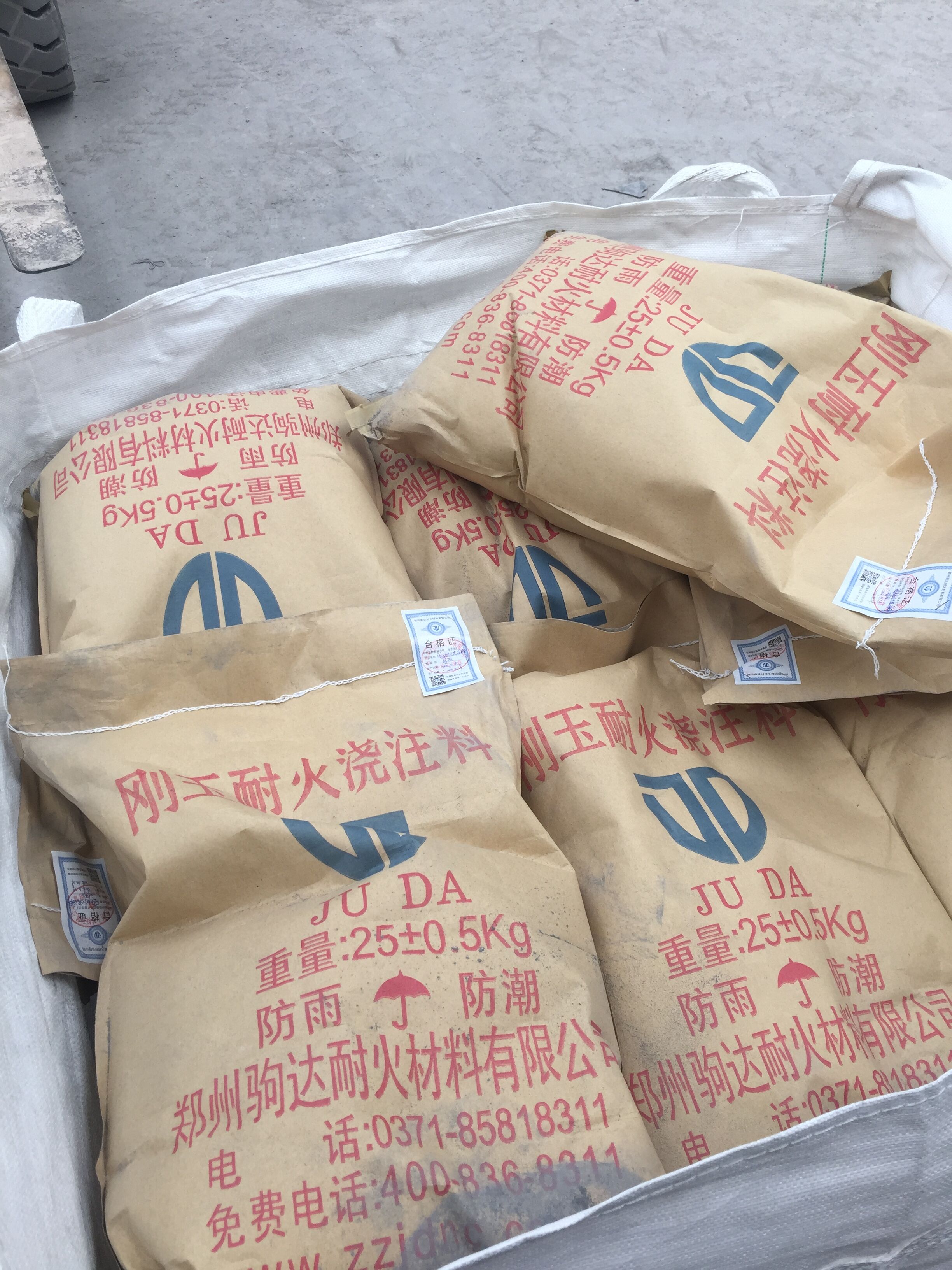 1、剛玉澆注料的包裝:該澆注料采用塑料編織袋包裝,結(jié)合劑由小塑料袋另裝,每袋25kg。